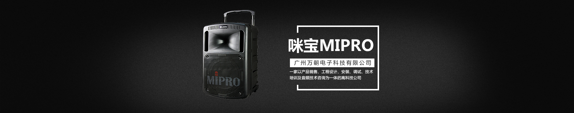 廣州萬朝電子科技有限公司成立于2008年,公司主要是一家以產(chǎn)品銷售、工程設(shè)計、安裝、調(diào)試、技術(shù)培訓及音頻技術(shù)咨詢?yōu)橐惑w的高科技公司。主要代理銷售產(chǎn)品包括:咪寶MIPRO,舒爾SHURE,森海塞爾SENNHEISER,BOSE專業(yè)音箱,JBL系列音箱,皇冠CROWN功放,QSC功放,聲藝SOUNDCRAFT調(diào)音臺,雅馬哈YAMAHA,DBX及AKG等周邊器材。